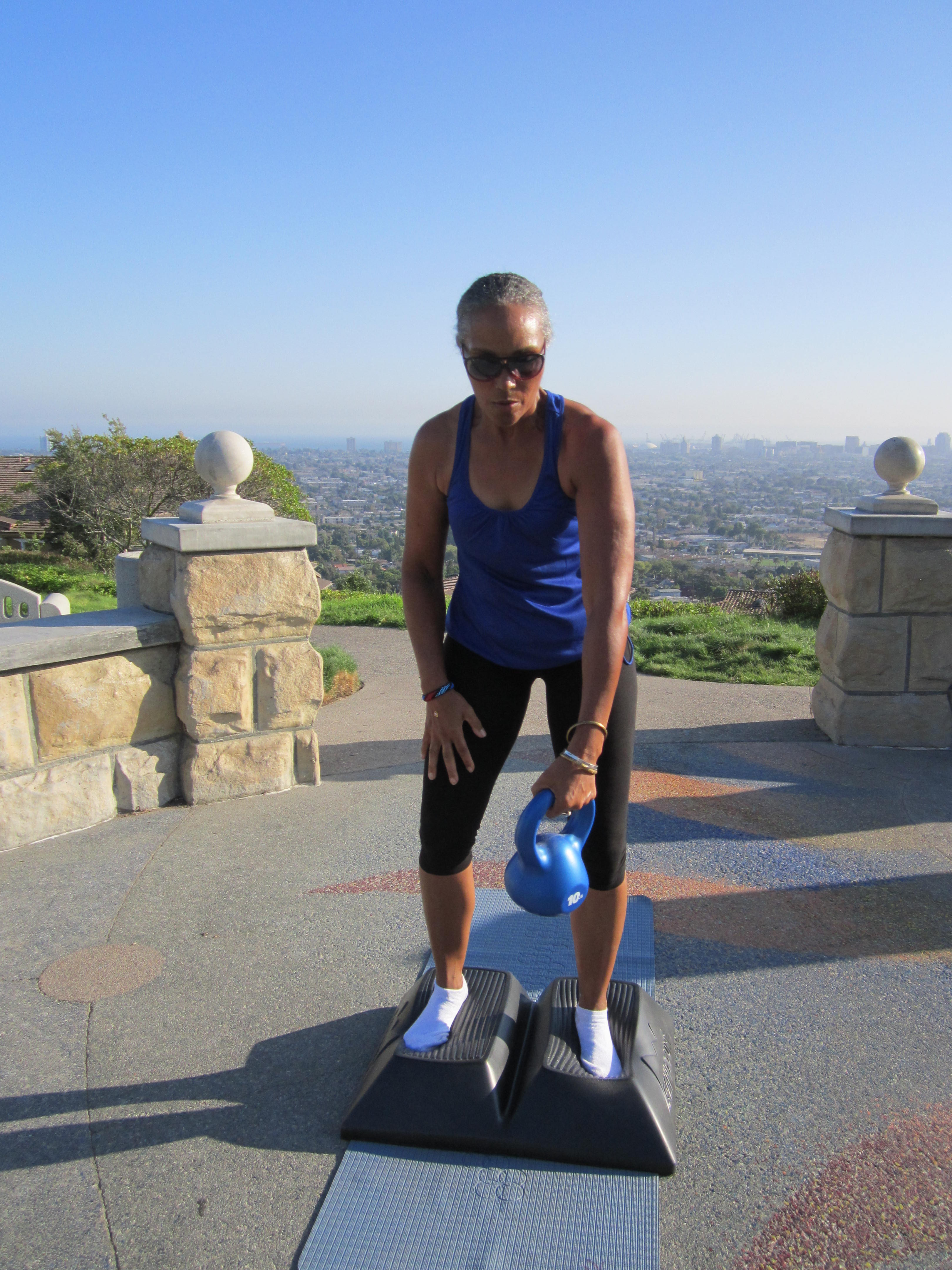 Simply holding on to a bar and learning to stand on one leg with your other foot raised slightly above the pad after you have centered yourself or just standing and learning to create small dime size circles clock-wise and counter-clockwise under your foot, noticing how the sensation moves up your legs into the trunk and into the hip sockets, will help you begin to retrain your foundation.