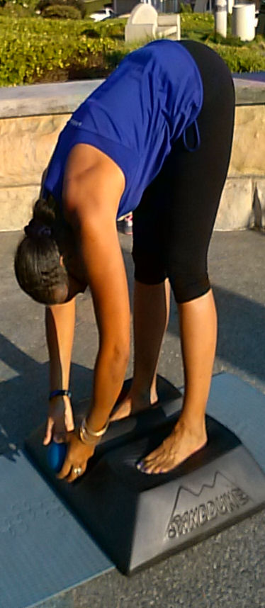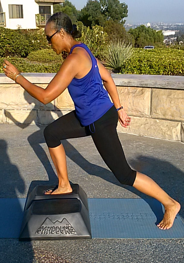 Learning to ground is sensing the entire foot working on the floor and being able to sense the body’s center. We call this mindfulness on the SANDDUNE. Learning to “Peel the Heel” is the ability to incorporate the whole foot in exercise thus strengthening it. One is able to learn to lift the knee and foot, higher, together facilitating easy of walking without stumbling or shuffling.